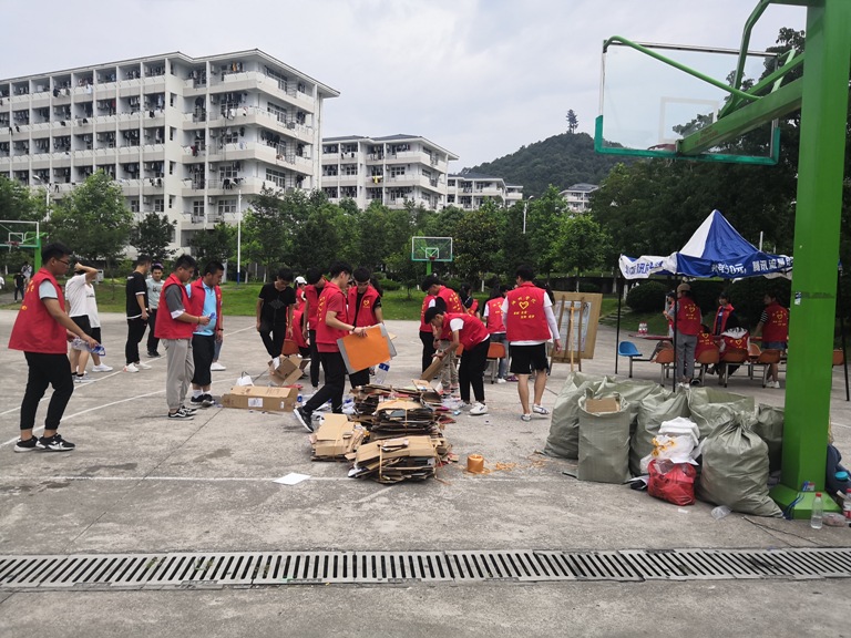此次主题系列活动包括“蓝天”随手拍大赛、废物利用大赛和环保盒子三个部分。经过前期的积极宣传,共计783人次同学参与。“蓝天”随手拍活动中,同学们根据主题“镜头下的池州蓝”进行线上投稿,并通过池州人网进行网络投票;废物利用大赛以“创意设计,变废为宝”为主题,参赛选手需现场完成作品,针对其创作意图、实用价值和观赏价值进行讲解阐述,最终,由评委进行点评打分;环保盒子活动倡导轻环保,由志愿者通过线上发布活动内容,每月一次收取老员工学习生活中废弃资源并打包整理进行集中处理。