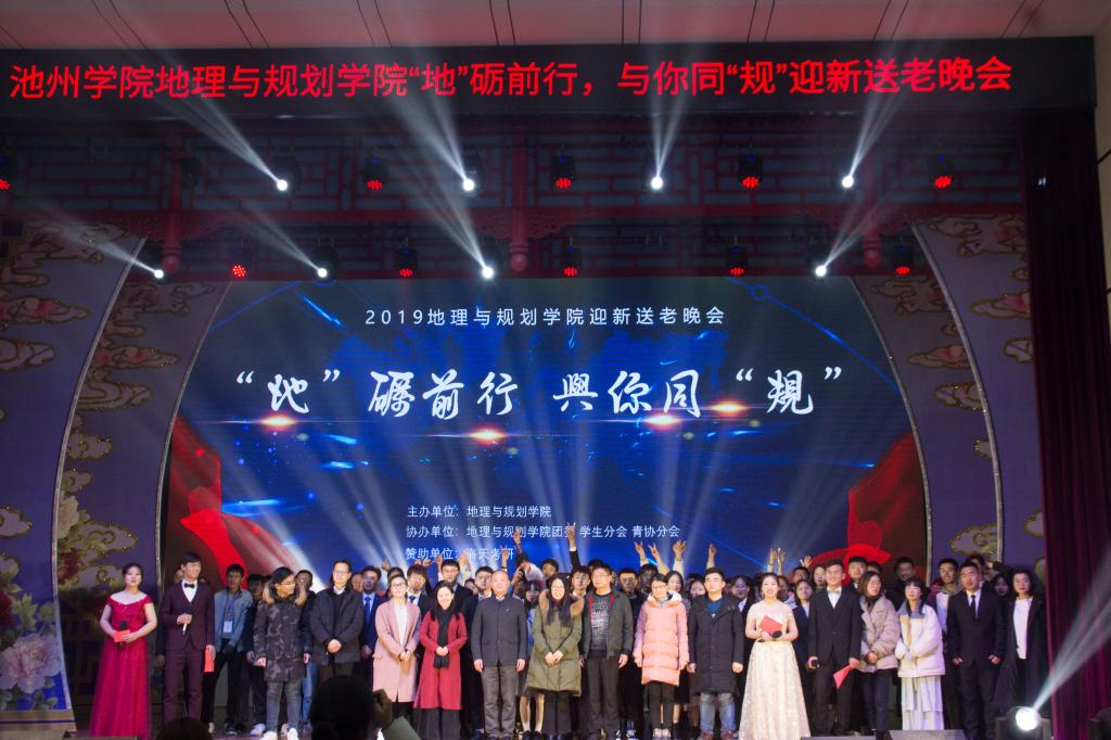12月19日晚,威廉希尔体育“‘地’砺前行·与你同‘规’”迎新送老晚会在博古楼大礼堂隆重举行。校团委书记程海峰、公司党委书记崔泽玉、党委副书记刘昉、校团委以及院师生代表500余人观看了本次晚会。