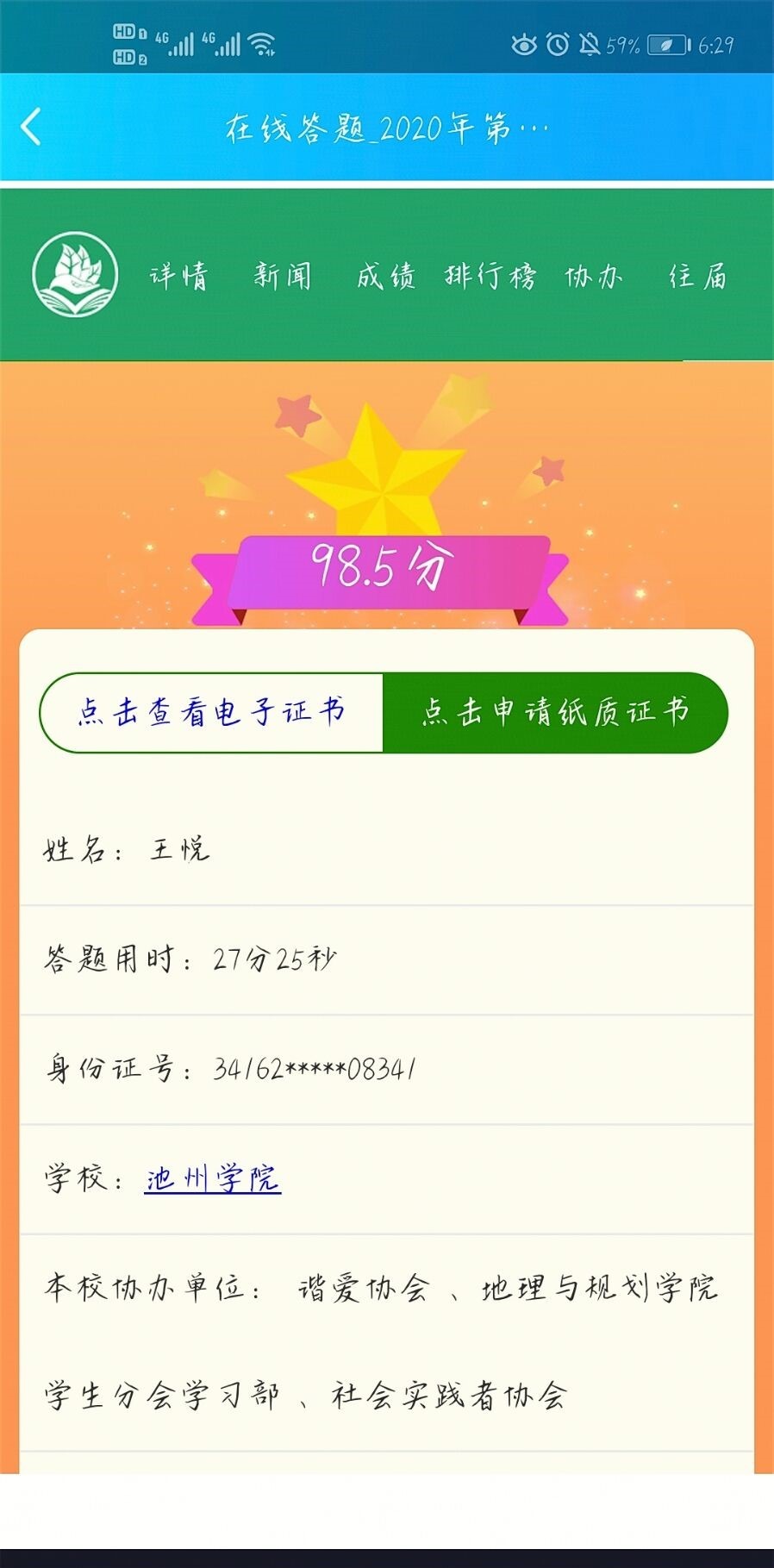 活动面向威廉体育全体员工,以“爱护碧水蓝天,拥抱美好明天”为活动主题。该活动以比赛的形式展开,分为初赛和决赛两个阶段,同学们踊跃报名、积极参加。同学们通过扫描官方专属二维码进入大赛官网并通过网络平台进行答题,完成答题且得分高于60分即为合格,官网自动生成优秀荣誉证书,比赛评委根据比赛分数、答题时间,取前20名入围全国总决赛评选一、二、三等奖。
