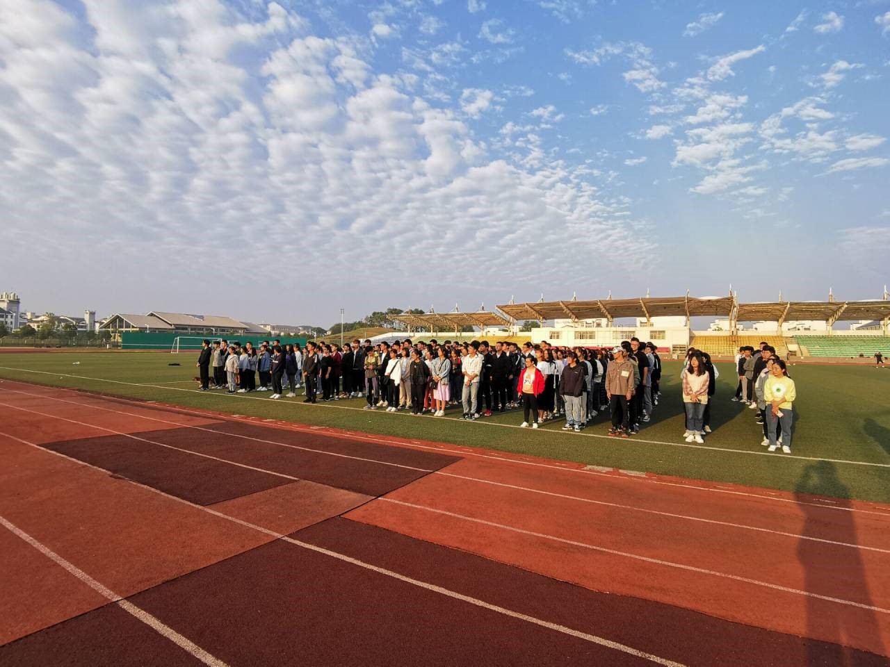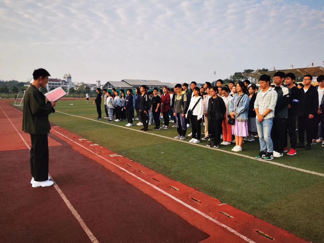 9月28日上午,威廉希尔体育组织全体2020级新生在公司运动场开展“扬国旗庄严·迎大学新‘声’”爱国主义教育活动。