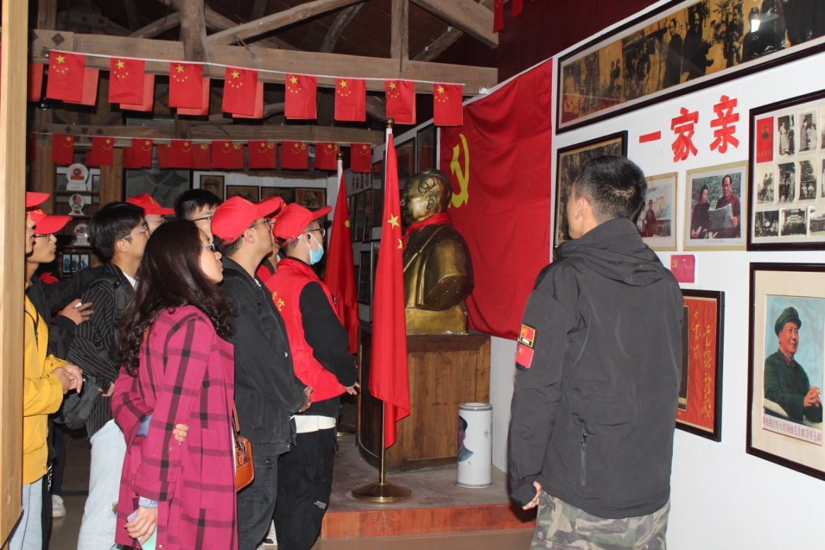此次劳动教育实践活动由公司党委副书记刘昉、人文教研室主任纪凯婷、院团委负责人陈元非三位老师带队指导。抵达池州红村后,工作人员带领同学们参观了毛主席像展馆、毛主席书法诗词馆、英雄故事墙、仿建南湖红船、古田会议室、延安窑洞、大渡河铁索桥、农耕馆、劳动大锅台、多肉植物园等,为同学们讲述从抗战到新中国成立后的各种不易,以毛泽东主席为榜样,希望同学们好好学习,认真劳动,不忘初心,报效祖国。指导老师教育同学们在追寻历史足迹中来感受中国特色社会主义取得的伟大成就,激发青年老员工厚植爱国主义情怀,增强民族自信心、自豪感、荣誉感,形成正确的历史观、民族观、国家观,夯实信念之基,号召同学们争做新时代的奋斗者、追梦人。