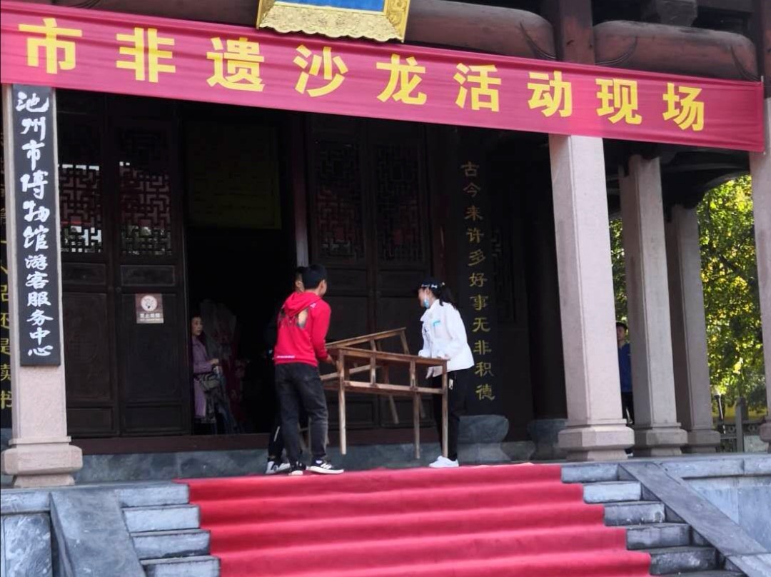 11月7日,在公司党委副书记刘昉、专业教师孙满英、专职辅导员周素芬三位老师的带队指导下,19地理科学第二劳动教育实践组近三十名员工来到池州市博物馆开展“池州非遗沙龙系列活动”的劳动志愿服务。