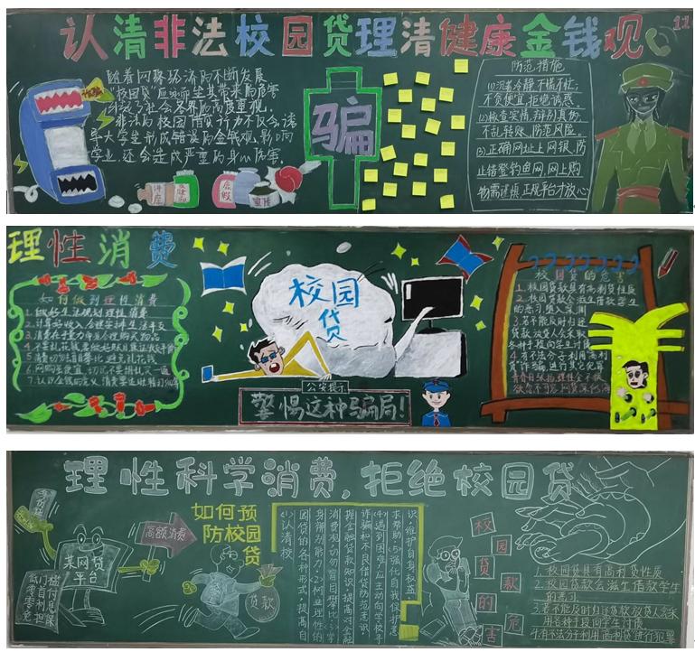 此次黑板报比赛紧扣主题,不仅提高同学们的团队协作能力,同时教育引导员工珍惜个人信用、保护隐私信息,增强了同学们对校园借贷风险的防范意识,帮助同学们树立了 “理性科学消费,拒绝校园贷”的观念。