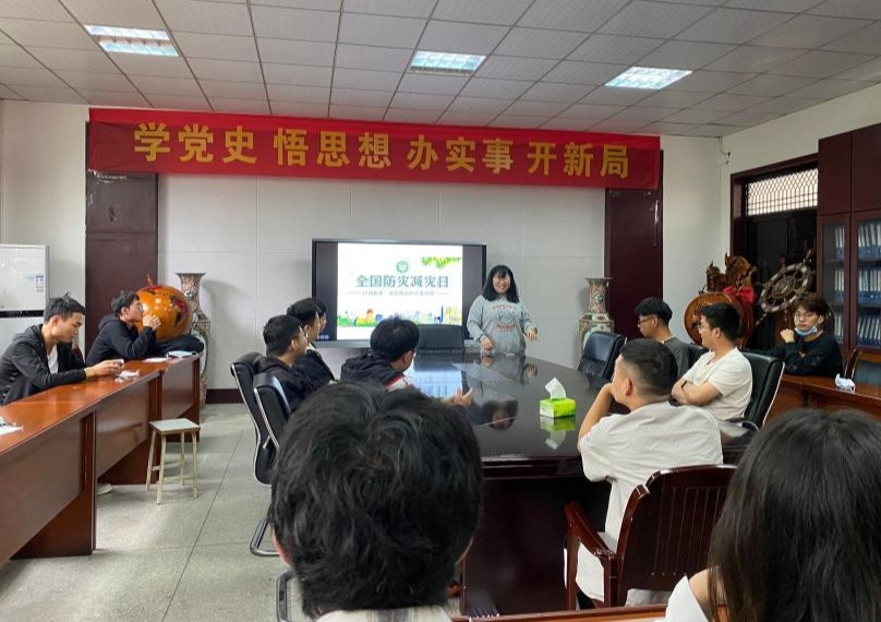 各班对宿舍进行了一次安全大检查,查找安全隐患,针对寝室门窗、地面、阳台、电器可能存在的问题认真排查,做好记录,发现隐患,及时解决。为了使防灾减灾宣传活动扎实有效,举办了“防灾减灾”讲座及以“防范化解灾害风险,筑牢安全发展基础”为主题的班会,活动形式多样:观看“防灾减灾”视频引导员工面对突如其来的“灾害”能够临危不乱、通过游戏“防灾减灾”知识问答调动同学积极性、强调“防灾减灾”重要性。