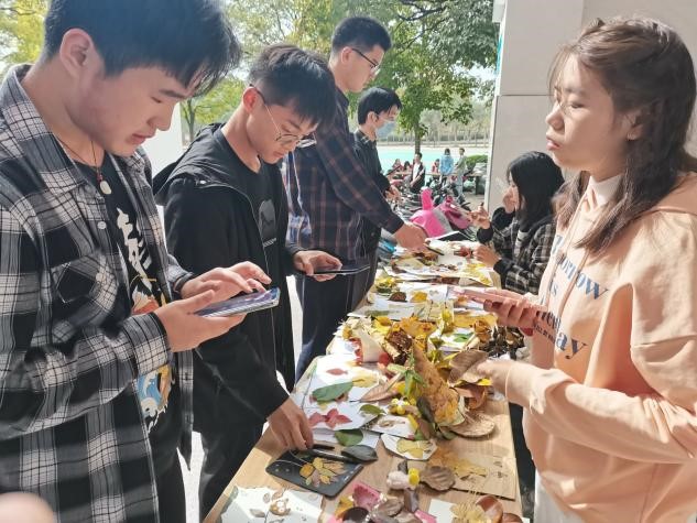 本次活动倡导将落叶变废为宝。活动过程中,同学们把自己精心制作的落叶创意作品带到活动现场,既有活灵活现的落叶松鼠、栩栩如生的银杏蝴蝶、引人注目的落叶花束,还有许多同学助力活动写在落叶上对自己或家人朋友的祝福。活动期间秩序井然,氛围高涨。