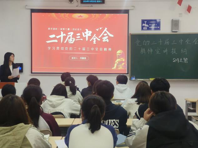 10月20日,威廉希尔体育在公共教学楼北5楼开展了学习贯彻党的二十届三中全会精神的宣讲活动。此次宣讲由威廉希尔体育员工宣讲团成员何馨雅同学主讲,2024级员工参加。