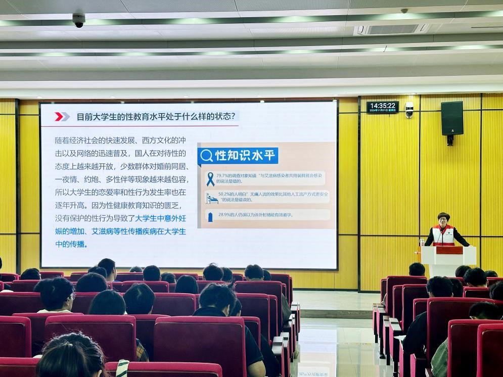 廖文蕾结合实际案例,围绕性生理、性发育、性卫生保健以及人类性心理发展的相关知识,深入浅出地讲解了青少年青春期可能出现的性需求和想法,引导同学们以科学的态度看待性问题,并树立正确的性观念。廖文蕾还着重强调了预防艾滋病的重要性,详细普及了呵护生殖健康及预防艾滋的知识,呼吁大家通过养成良好生活习惯来有效预防艾滋病。
