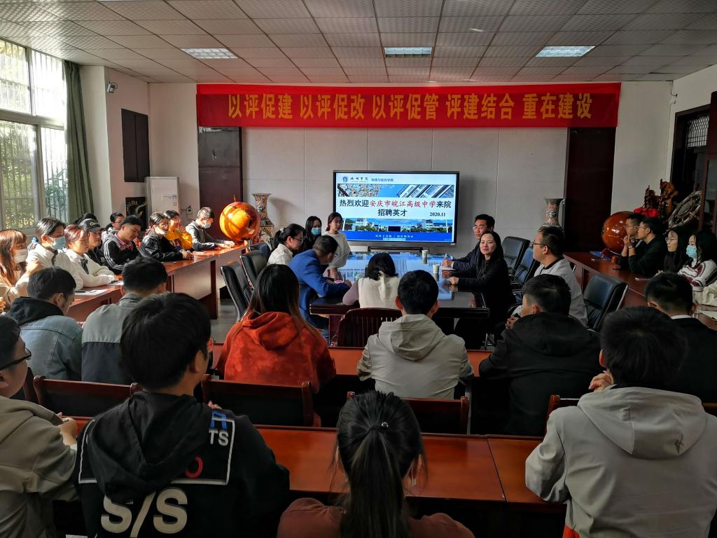 为切实做好公司2021届师范类毕业生就业工作,大力构建毕业生与用人单位的交流平台,11月11日,安庆皖江高级中学应邀来院考察交流,并进行就业宣讲。公司党委副书记刘昉、毕业班辅导员及2021届相关专业的80余名员工参加了交流会。