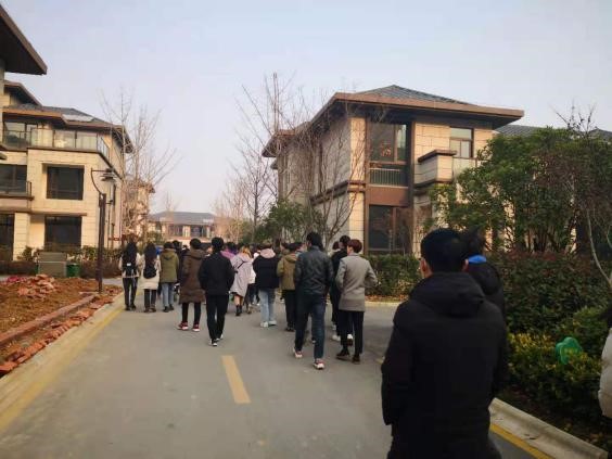 在售楼处参观学习之后,组织员工进入小区内部参观了项目现场道路、景观和房屋内部实际建成效果。