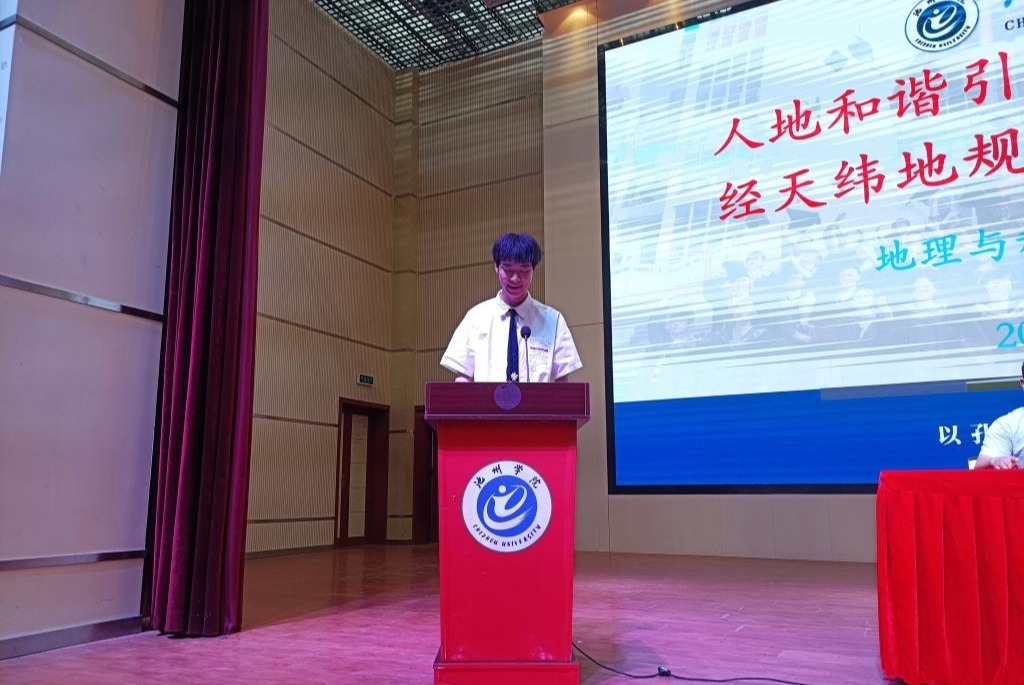 2020级地理科学专业吕克同学代表老生发言,他结合自身的学习、生活和工作经历,为新生提供了一系列的建议和祝福,与新生共勉。