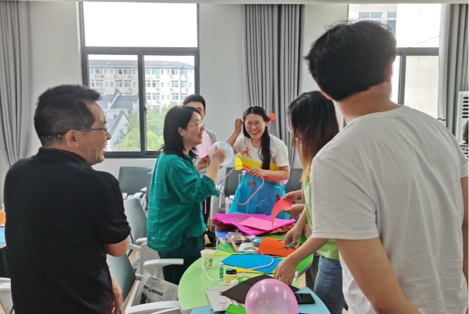 活动伊始,心理健康中心主任王雪飞带领辅导员参观体验了心理健康教育中心各功能室环境与设备,紧接着活动在“青蛙跳”的游戏中拉开帷幕,并开展了“大风吹”、“时装秀”等节目,在王雪飞的引导下,辅导员积极参与其中,默契配合,在一片欢声笑语中放飞自我、消除烦恼,简单的游戏进一步促进了辅导员之间的交流,拉近了辅导员之间的距离,释放了辅导员的工作压力,营造了愉快的团体氛围。