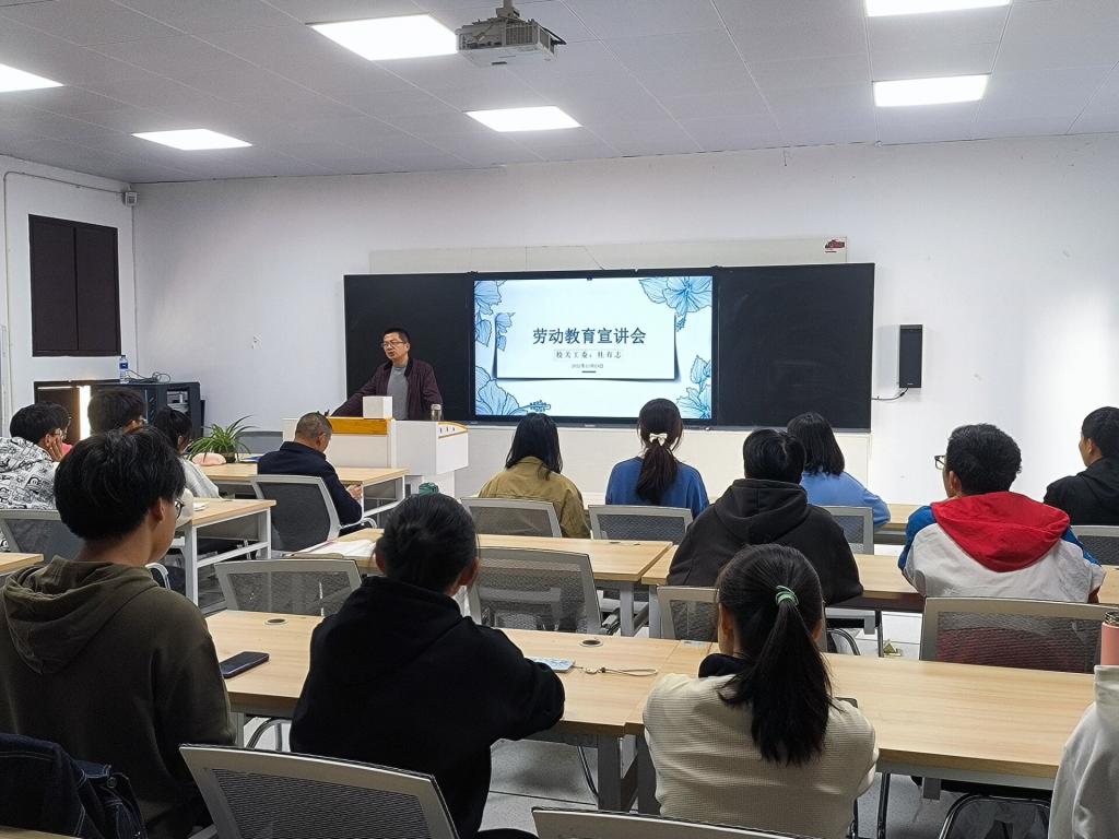2022年10月19日下午,威廉希尔体育在博雅南103举办劳动教育宣讲会,此次宣讲会邀请校关工委桂有志老师主讲,威廉希尔体育经理张乐勤主持,21级、22级部分员工代表参会。