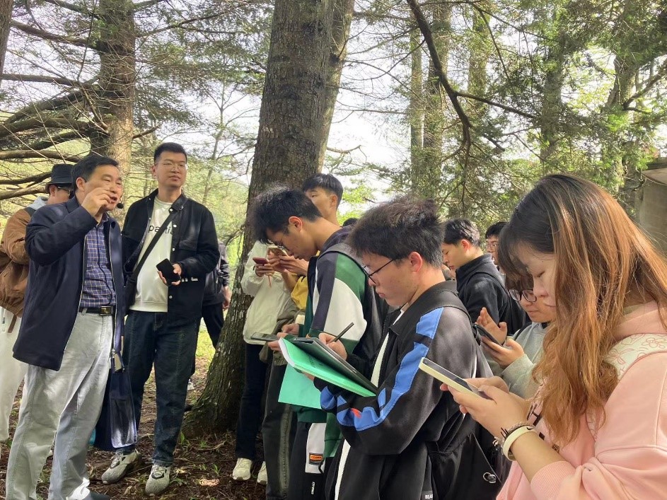 陈保平教授在实习途中讲述了庐山的三次抬升带来的地貌变化,介绍了飞来石的由来以及剪刀峡的形成,对庐山冰川学说的不同结论发表了看法,引发员工思考。吴新民教授沿途为同学们介绍了各种植被、土壤剖面、在花径公园内讲解中外珍贵植被,介绍庐山最重要的三大针叶林植物:扁柏、冷杉、柳杉。同学们通过老师们细致的讲解,加深了对地质、地貌、植被、土壤的了解,对庐山的自然地理环境有了系统的认识。在老师的带领下,同学们爬山坡、拉样方、测产状,掌握了野外实习必备的实践方法。