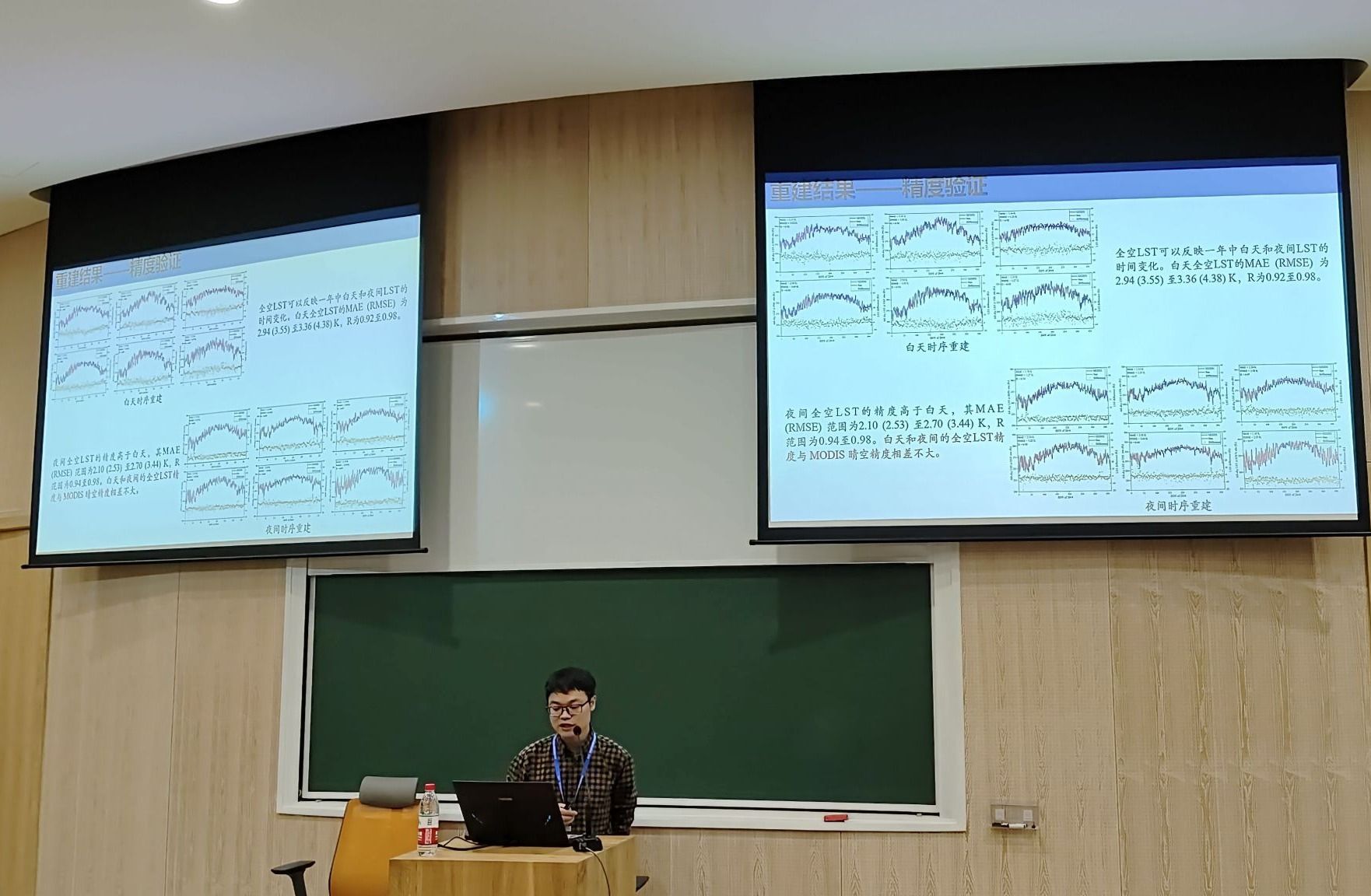 本次大会旨在推动摄影测量与遥感领域学术交流,分为特邀报告、专题报告和分会报告三种形式。章勇老师就“多信息融合网络的地表温度无缝重建方法”进行主题报告,探讨热红外遥感云下地表温度的无缝重建方法,专题汇报获得与会专家学者的一致好评。
