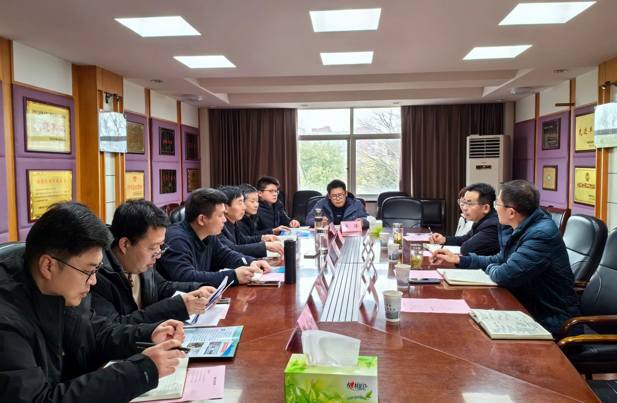 为了深化与安徽省地矿局324地质队战略合作,拓展横向项目、人才培养质量合作边界及深度,2024年2月29日,公司党委书记许卫兵、经理张乐勤及荣慧芳博士、陈实博士赴安徽省地矿局324地质队商谈校企合作事宜。安徽省地矿局324地质队队长马冬、总工程师朱永胜、副队长丁宁及地质勘查所副所长江志、地质环境勘查院经理郭德岭、高分中心主任孙华魁、测绘技术院经理李洋出席座谈会。