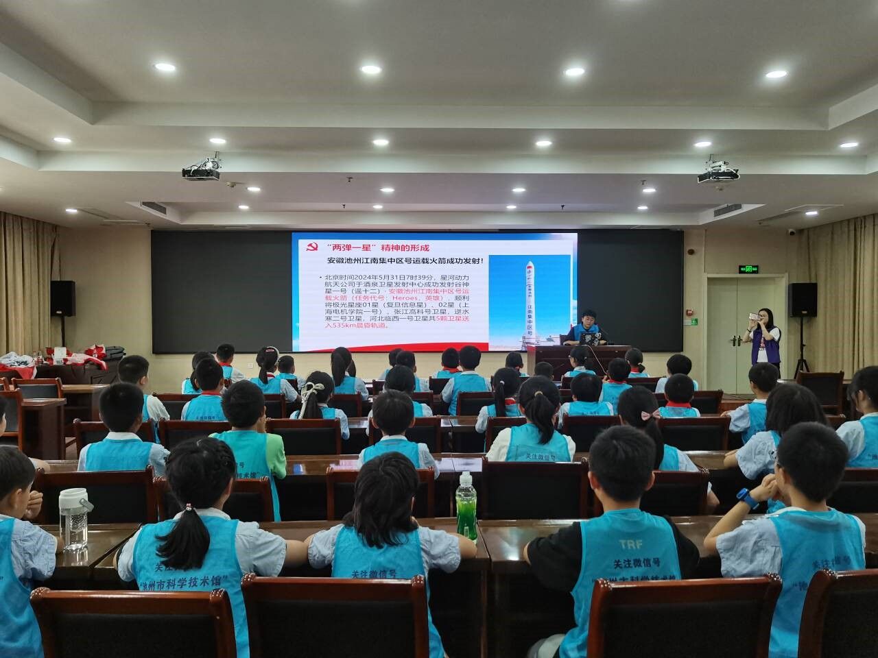 2024年5月25日—6月1日是全国科技活动周,为贯彻落实习近平总书记关于科技创新的重要论述,6月1日,威廉希尔体育员工第一党支部指导“艺颗红星、经天纬地”党团共建志愿服务队(2024年全国老员工“两弹一星”精神志愿宣讲团)走进池州市科技馆开展“两弹一星”精神主题科普活动。参加活动的有员工第一党支部师生党员、志愿服务队成员以及科技馆近50位小朋友。