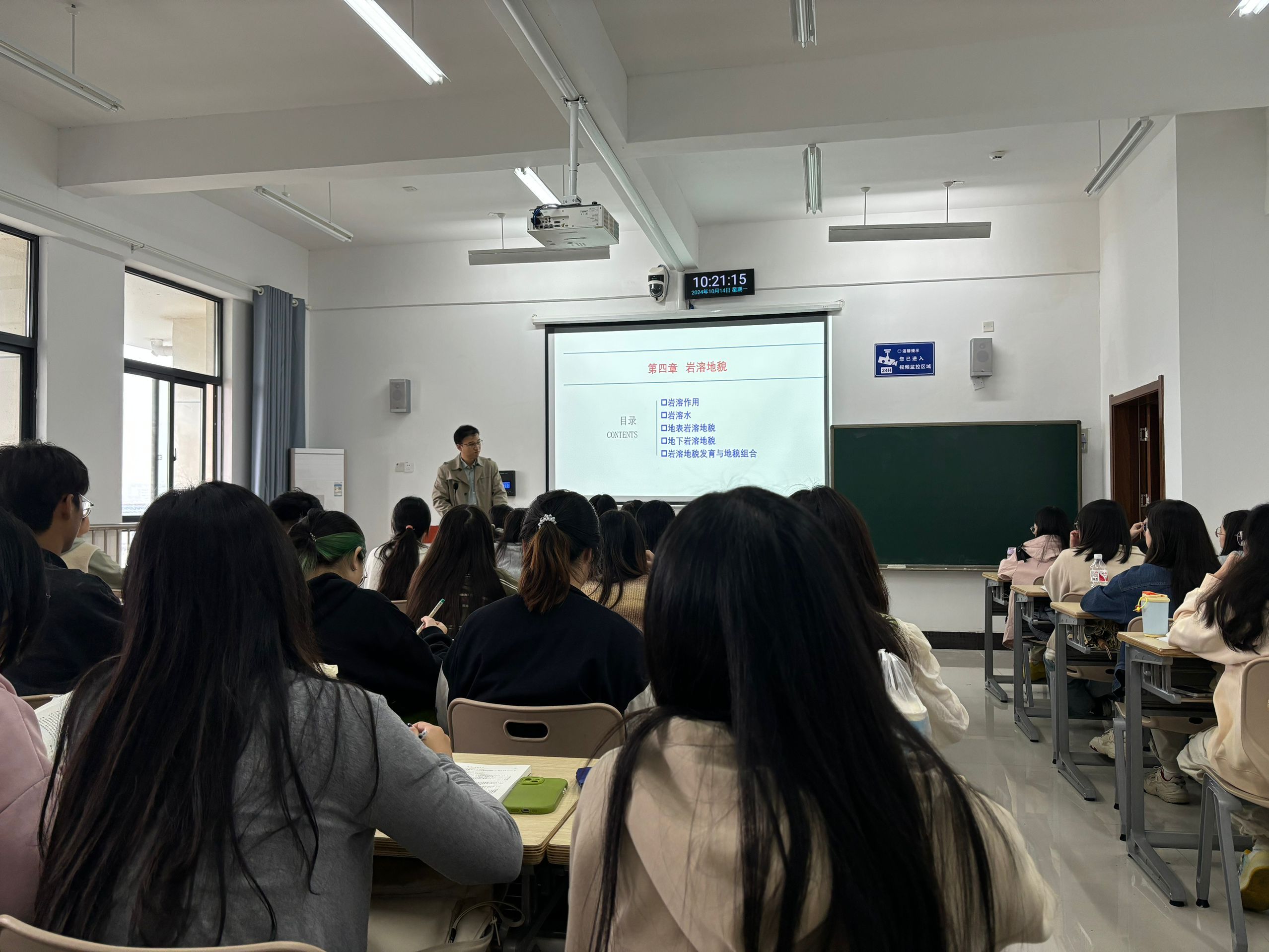 曹明达老师在 “地貌学”示范课中,以黄山和碳酸盐岩地区洞穴发育差异为切入点,巧妙引出课程内容,通过丰富的案例和清晰的讲解,使员工们深入理解了岩溶作用的原理,激发了他们对地质现象的探索热情。