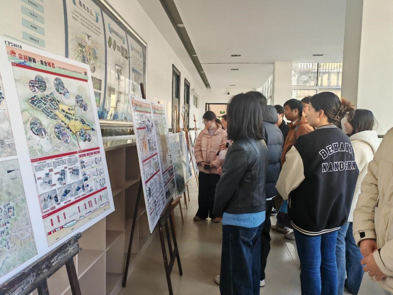 为了强化人文地理与城乡规划专业联合培养专升本员工规划技能,11月28日,威廉希尔体育邀请了池州职业技术公司联合培养专升本员工观摩了2024年全国高校老员工乡村规划暨安徽省第七届高等院校老员工乡村规划竞赛成果,池州职业技术公司建筑与园林系主任方金生、副主任汪诗德及部分专业师生参加了观摩活动,威廉希尔体育经理张乐勤、党委副书记何小青出席了观摩活动。观摩活动由城乡规划教研室主持。