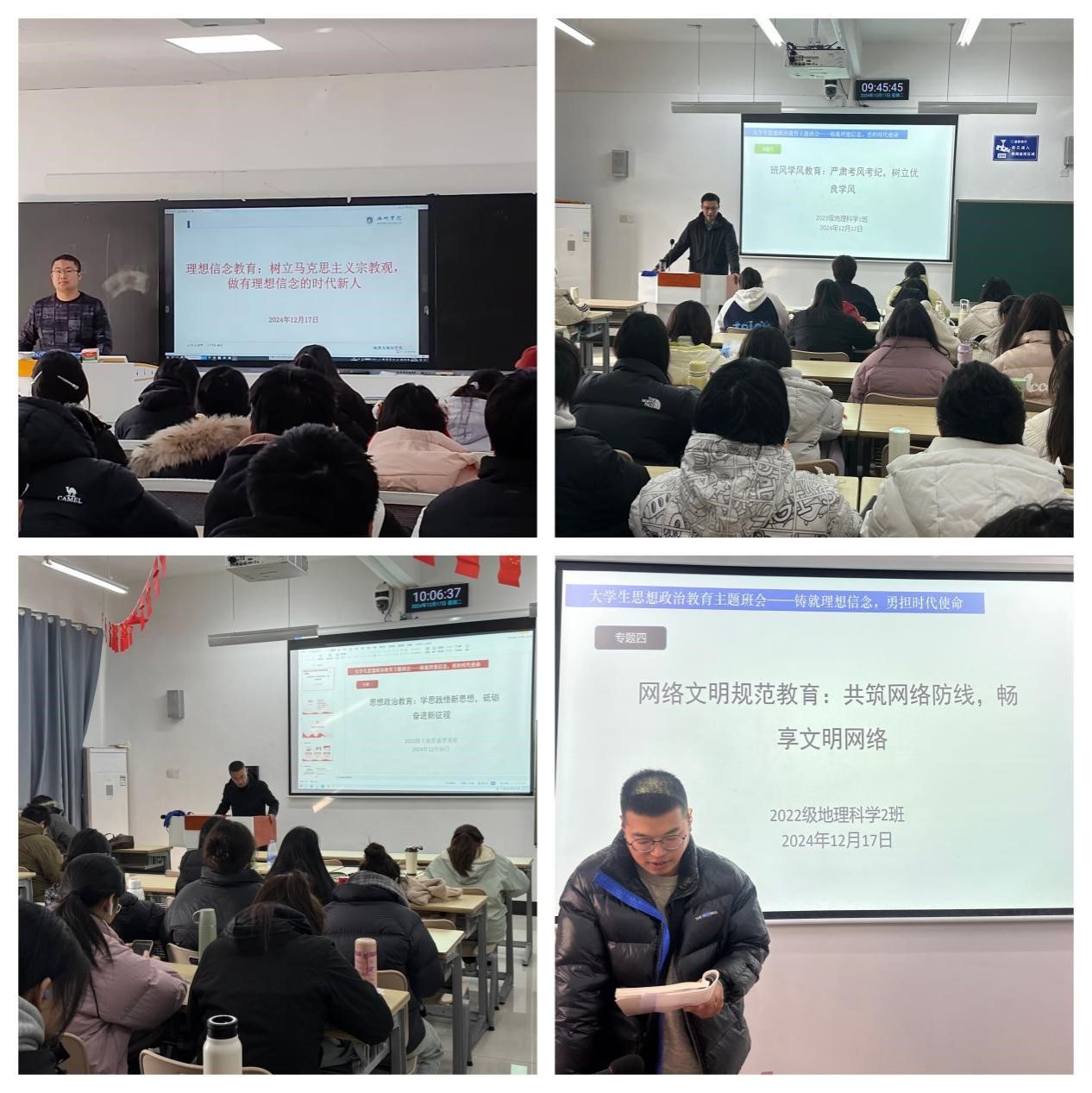 此次主题班会围绕四个核心专题展开:一是“学思践悟新思想,砥砺奋进新征程”,旨在引导员工深入学习新时代思想,并将其转化为实际行动,为新时代的发展贡献力量;二是“树立马克思主义宗教观,做有理想信念的时代新人”,帮助员工认清宗教的本质,树立正确的宗教观念,坚定理想信念,成为有理想、有道德、有文化、有纪律的新时代青年;三是“严肃考风考纪,树立优良学风”,强调考试纪律的重要性,提升员工的诚信意识,为营造公平、公正、优良的学风环境奠定基础;四是“共筑网络防线,畅享文明网络”,加强员工的网络安全意识教育,引导员工文明上网,共同维护网络空间的和谐与安全。