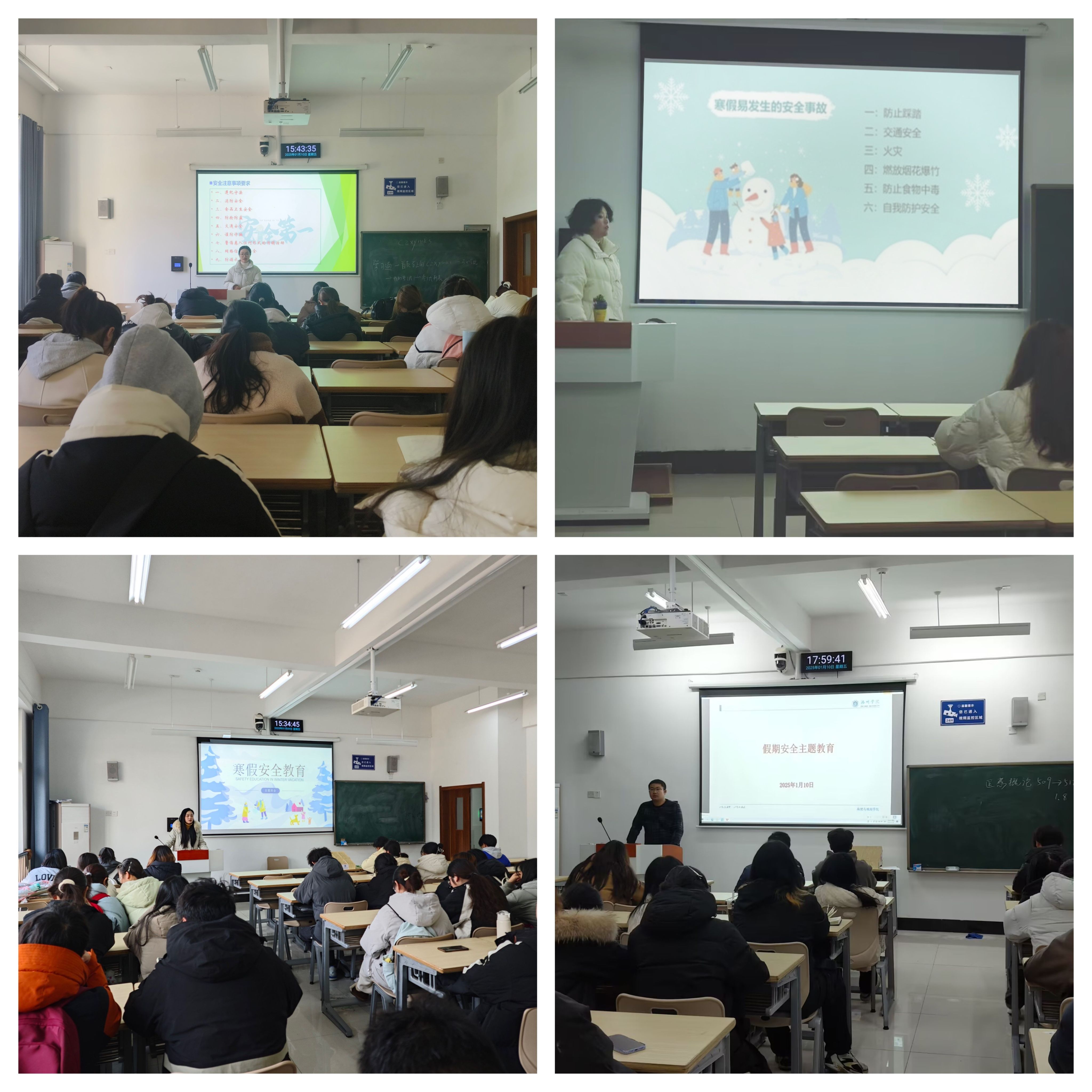 在班会上,辅导员向同学们强调了宿舍安全、交通安全,人身财产安全,网络安全,食品安全,防溺水,防诈骗,防网络沉迷及防传染病等事项,宣传普及了密闭场所逃生以及燃放烟花爆竹等多方面的安全知识,特别提醒同学们离校后要关好门窗、切断电源,并在回家及返程途中选择正规交通工具,遵守交通规则。期间,各班级详细统计了每位同学的离校时间及目的地等信息,要求同学们在安全到达目的地后,及时向辅导员报告平安。